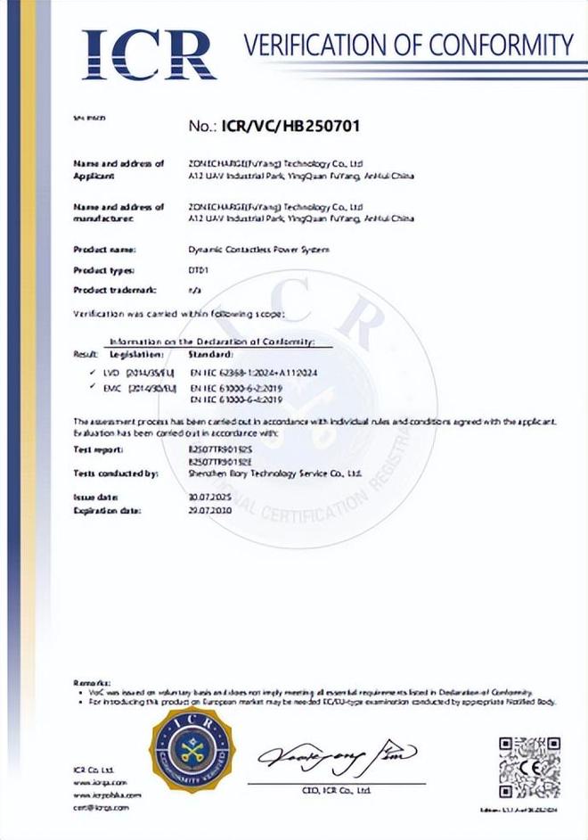 CE认证是产品进入欧洲市场的强制性通行证,表示产品已满足欧盟相关指令规定的基本安全要求。此次认证过程涵盖了电磁兼容指令(EMCD)、低电压指令(LVD)等多个关键指令,确保了DynaCPS系统在各个方面都符合欧盟的 高标准要求 对中惠创智而言,这一认证具有里程碑意义。