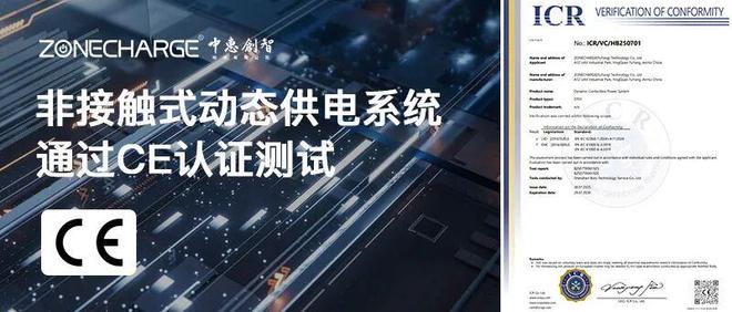 近日,中惠创智(深圳)无线供电技术有限公司宣布,其自主研发的非接触式动态无线供电系统DynaCPS™成功通过欧盟CE认证,成为国内物流自动化领域首个获得该认证的动态无线供电解决方案。